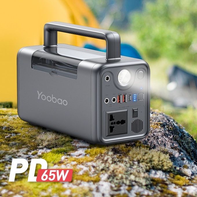 USB‑C (PD up to 65 W), dual USB‑A (total 5 V / 4 A), two 12 V DC ports, and one AC socket